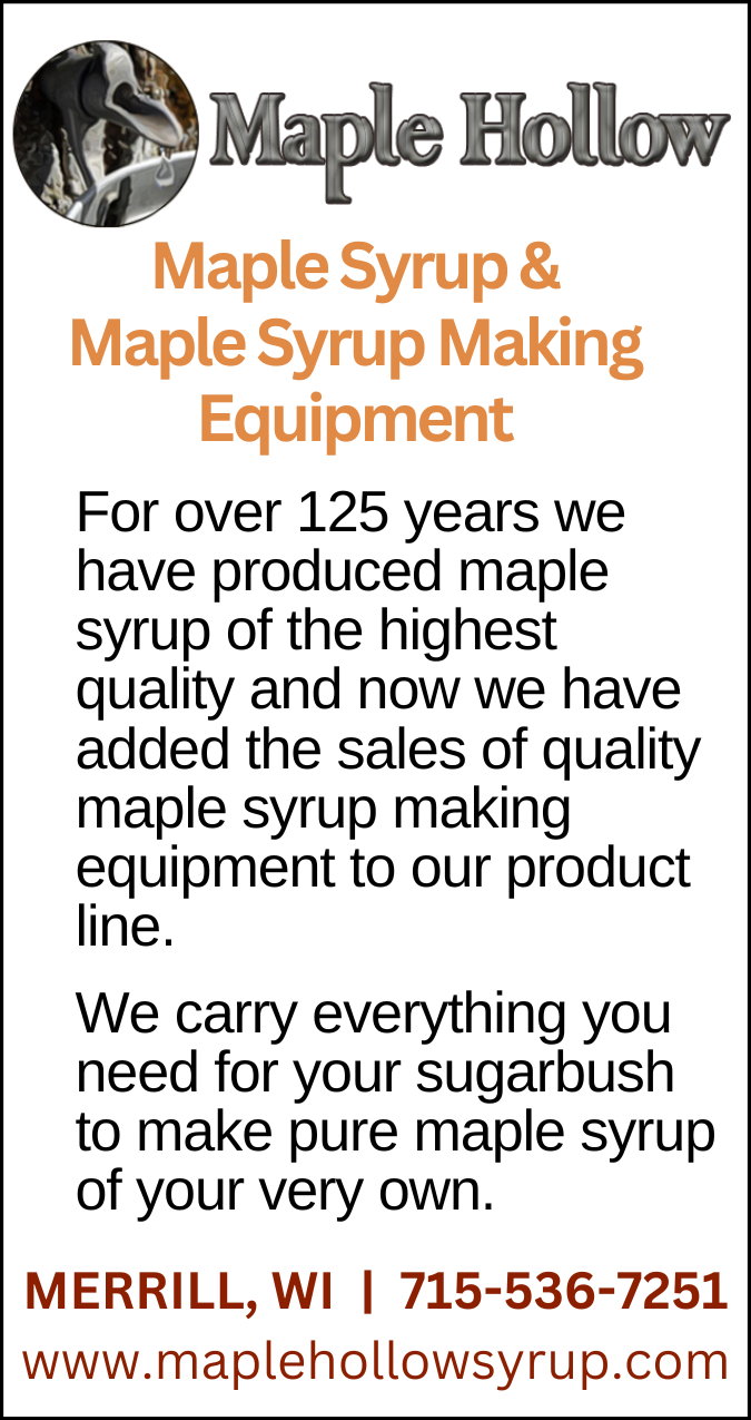 On March 14, 2026 the WMSPA will be holding the official First tree Tapping to declare Maple Month in WI from March 15-April 15 at Bauer Valley Maples in Cazenovia, WI. The event will begin at 8:00 a.m. with coffee and donuts at St. Anthony Parish Center, 32497 County Hwy V Cazenovia, WI 53924. A bus will pick up attendees at the center at 9:00 a.m. to travel to Bauer Valley Maple’s woods for the official tapping which will begin at 10:00 a.m.